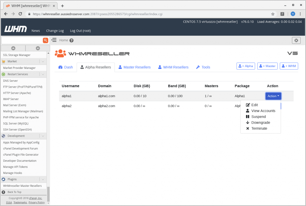 Super alpha accounts come with all of the great features a normal reseller account has such as the daily backups and Jetbackup, ssd storage, professional email accounts, security and malware plugins and so much more but it also comes with the WHMReseller plugin which allows you to create the different types of accounts.