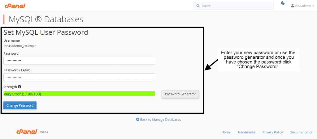 Your database user will now be updated with the new password and you can use that to connect to the database. If you have any questions or need help, get in touch!