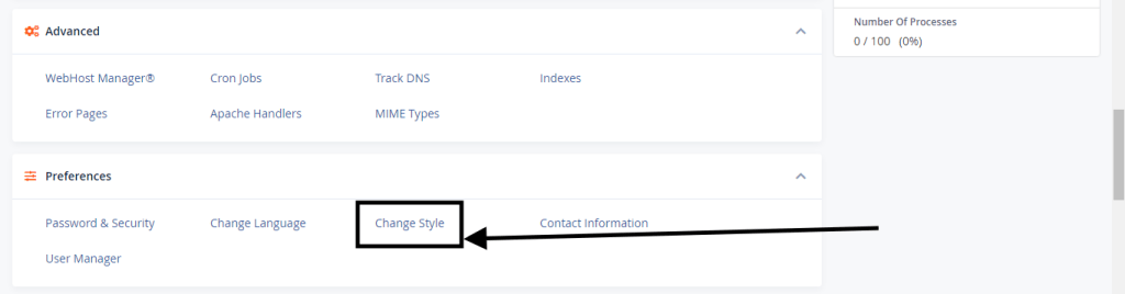 2. Find and Click “Style” under the “Preferences” tab on your cPanel.