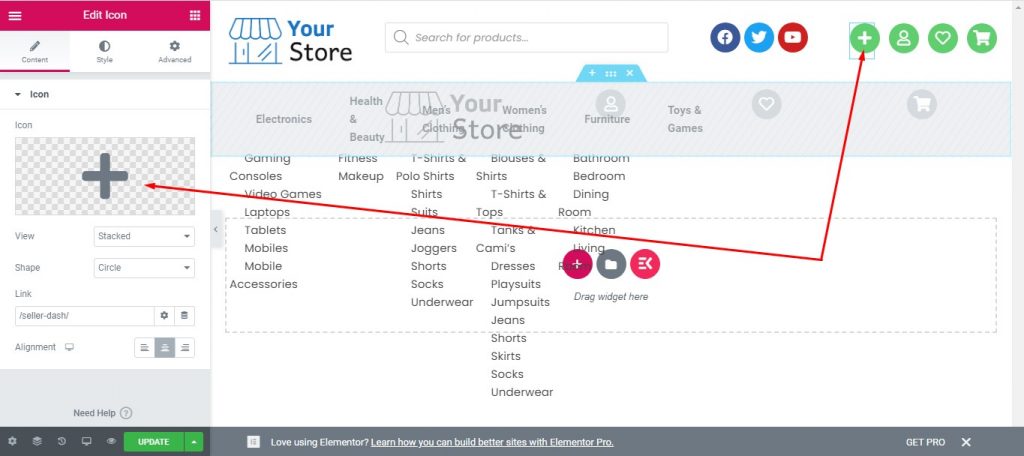 4. Now select the header icon you want to change and click that icon in the Elementor menu.
