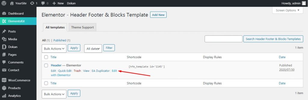 2. Hover over “Appearance” and click “Header Footer & Blocks”.