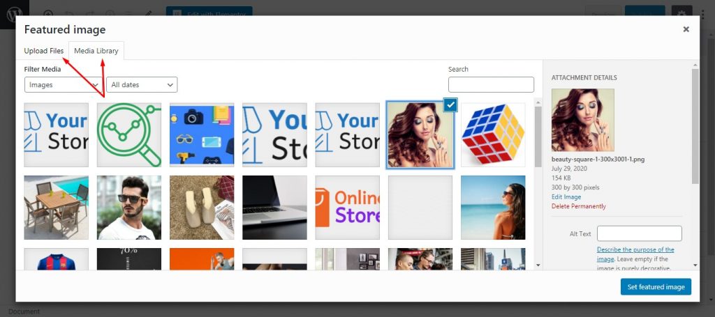 5. You can upload a new image from “Upload Files” or select one already in your library.
