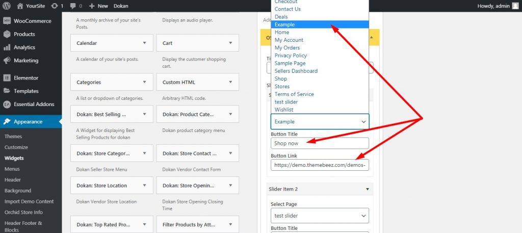 9. Now select that page you just created from the menu and then enter a button title, this is the text shown in the button on the slider. Then enter the link you want that slider to point to.