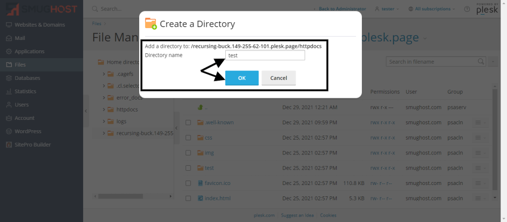 5.2. You can now enter the name of your new directory and click “Ok” once done.