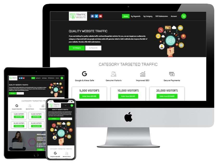 Are you looking to start a new profitable website? We have the perfect solution with this traffic reselling website. It’s a very simple but effective business, you sell traffic on your website, pass the order onto us, we fulfil the order and you keep the profit.